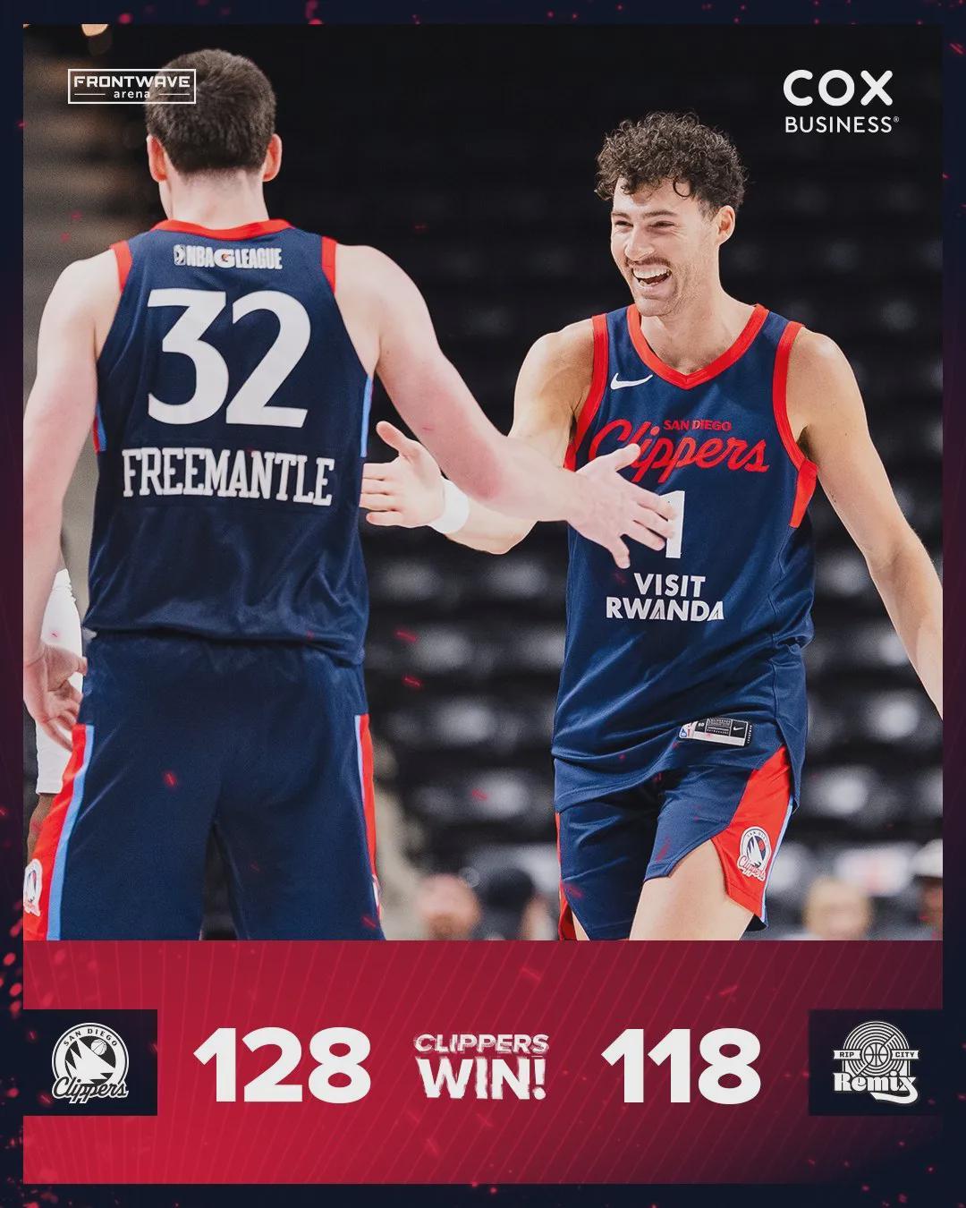 圣地亚哥快船队首发中锋扎克‑弗里曼托,身高2米06,本赛季在洛杉矶快船拿过训练营合同。弗里曼托身高比较吃亏,但他脚步移动比较快,跟杨瀚森属于互爆状态。第一节打完,混音队28-26领先2分,第二节快船单节32-24!