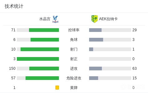 水晶宫0-0AEK拉纳卡,萨尔头槌造险